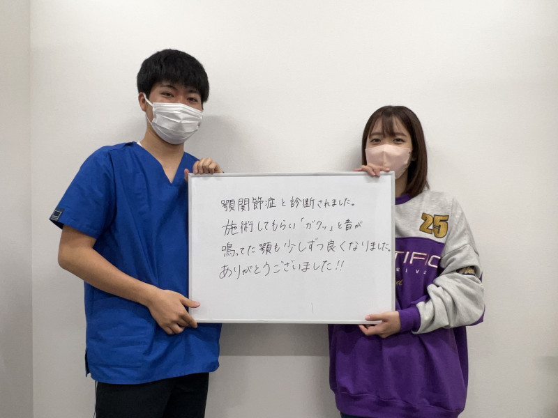 「施術してもらい顎関節の『ガクッ』と鳴っていた音が良くなりました!」