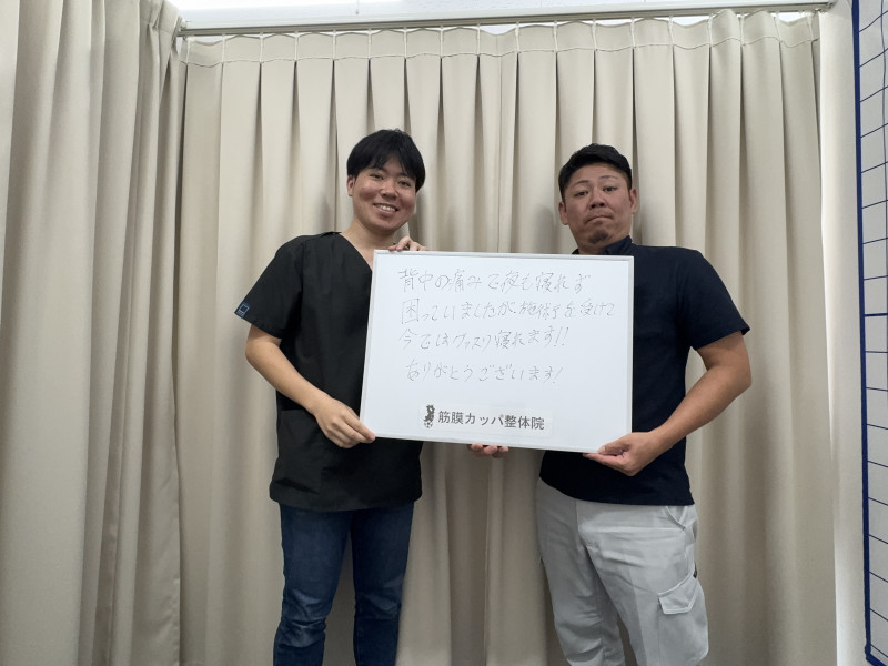 「背中の痛みで夜も寝れず困っていましたが施術を受けて今ではグッスリ寝れます!」
